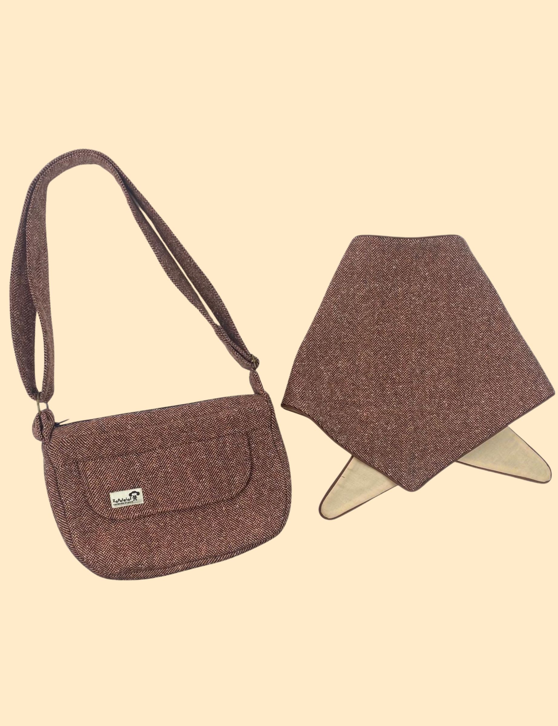 El bolso es regulable, tiene bolsillos exteriores. La bandana es tamaño único